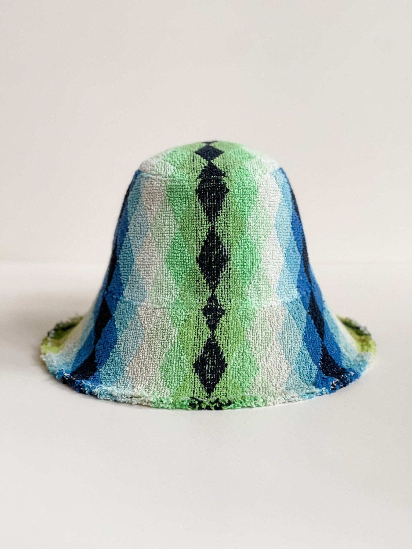 Blue and green should always be seen! A lovingly handmade hat with precise and considered pattern placement made from a fantastic vintage towel.