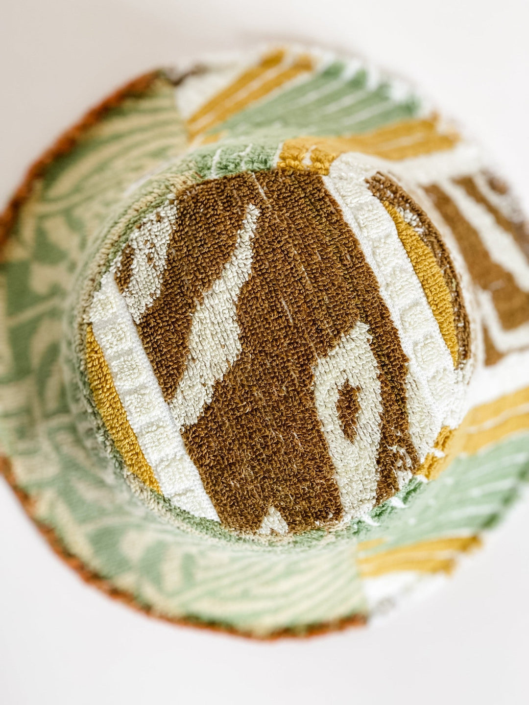A one-of-a-kind bucket hat handmade with love and skilled hands in Sydney. The hats in this collection have been patchworked together from the pieces left from the launch of our Rescues line. Creating and launching our Rescues line was one of the best parts of 2023. Giving time and attention to things traditionally discarded, breathing new life into the otherwise forgotten, and in doing so creating an energy and beauty greater than the sum of its parts - that is what the Rescues are all about. And these are the Rescues of the Rescues.
